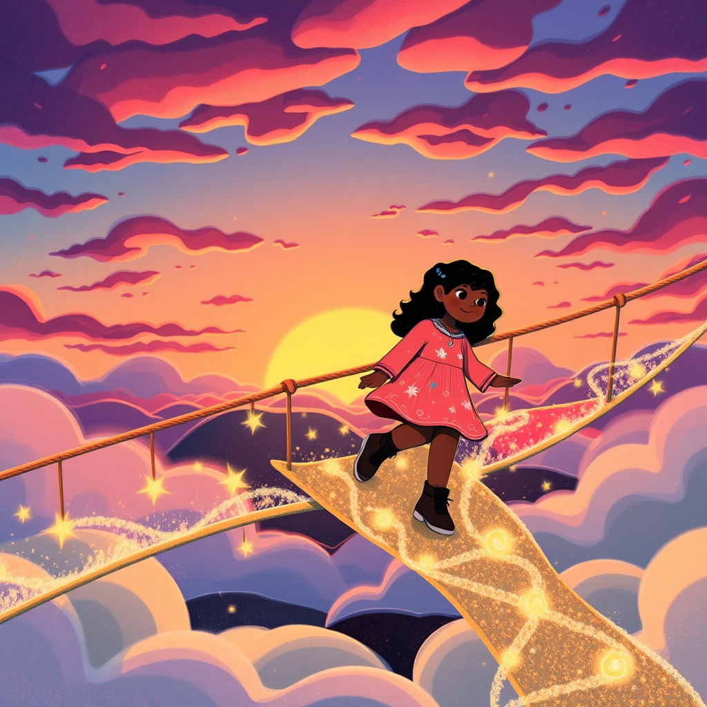 Finally, [Tynilah](93JD5TGJ) visited the Sky Bridge to retrieve the Pearl of Friendship, guided by shimmering fireflies as she balanced on a rope-like bridge above the clouds.