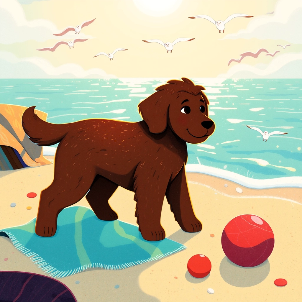 One sunny morning, [Valentino](5N2X2RS7)'s parents took him to the beach. They set up their beach umbrella and settled in to enjoy the sun. [Valentino](5N2X2RS7) was determined to explore!