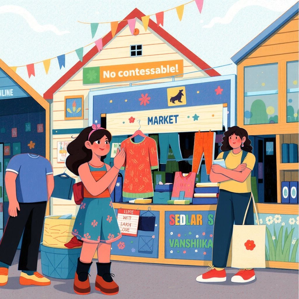 With [Ahana](S3YXTQVW)'s encouragement, [Vanshika](XQDHVYXX) started thinking creatively about her clothes. She imagined new designs, mixing colors and textures that were vibrant and cheerful.
