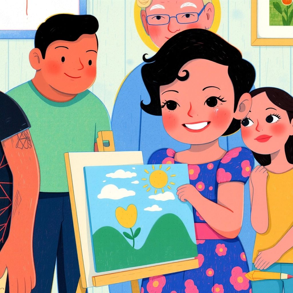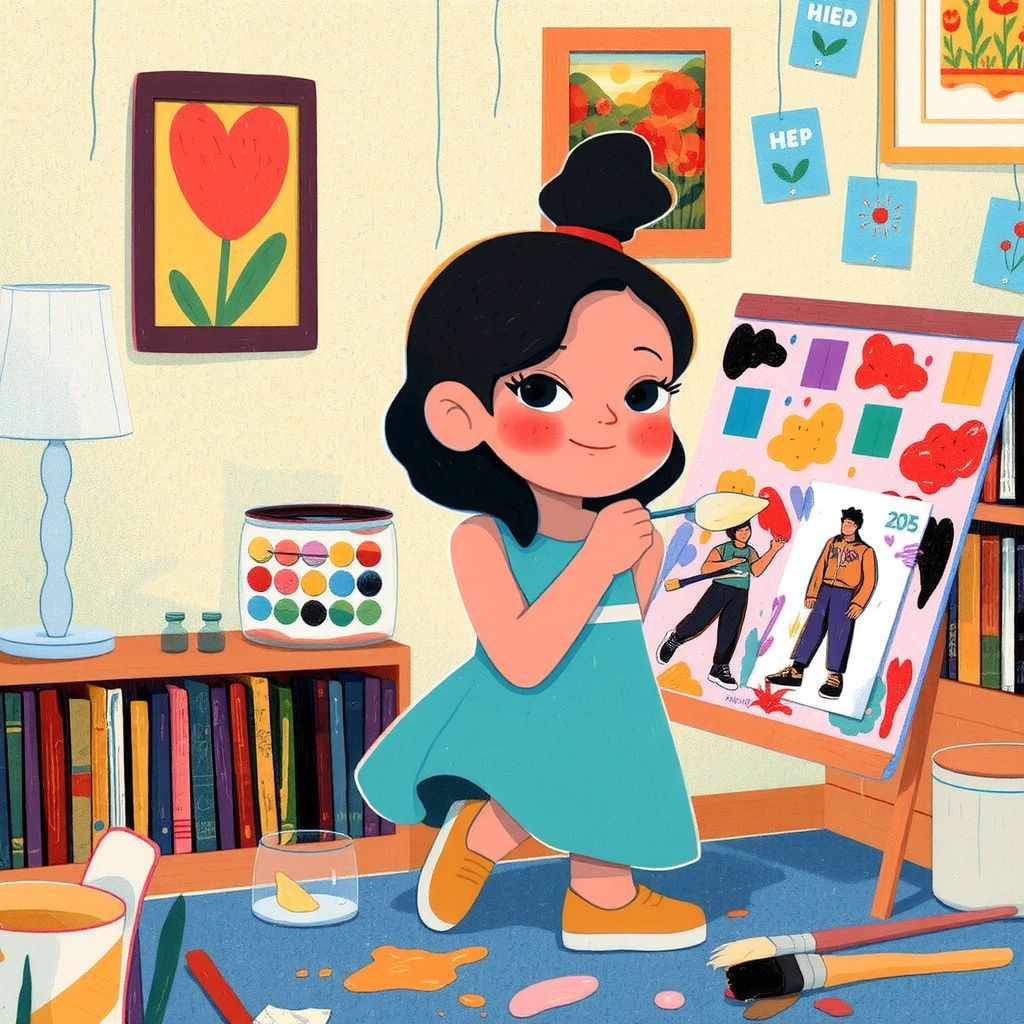 Encouraged by their kindness, [Vanshika](XQDHVYXX) decided to try creating real art. She started small, sketching simple pictures, and experimenting with colors. She made mistakes, but with each one, her art improved.