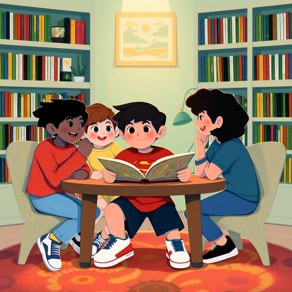 Finally, it was reading time. [Vartan](D4LWC9HM) and his friends took turns reading parts of a fun story. 'Great job, [Vartan](D4LWC9HM)!' his friends cheered when he finished his part.