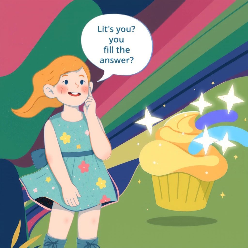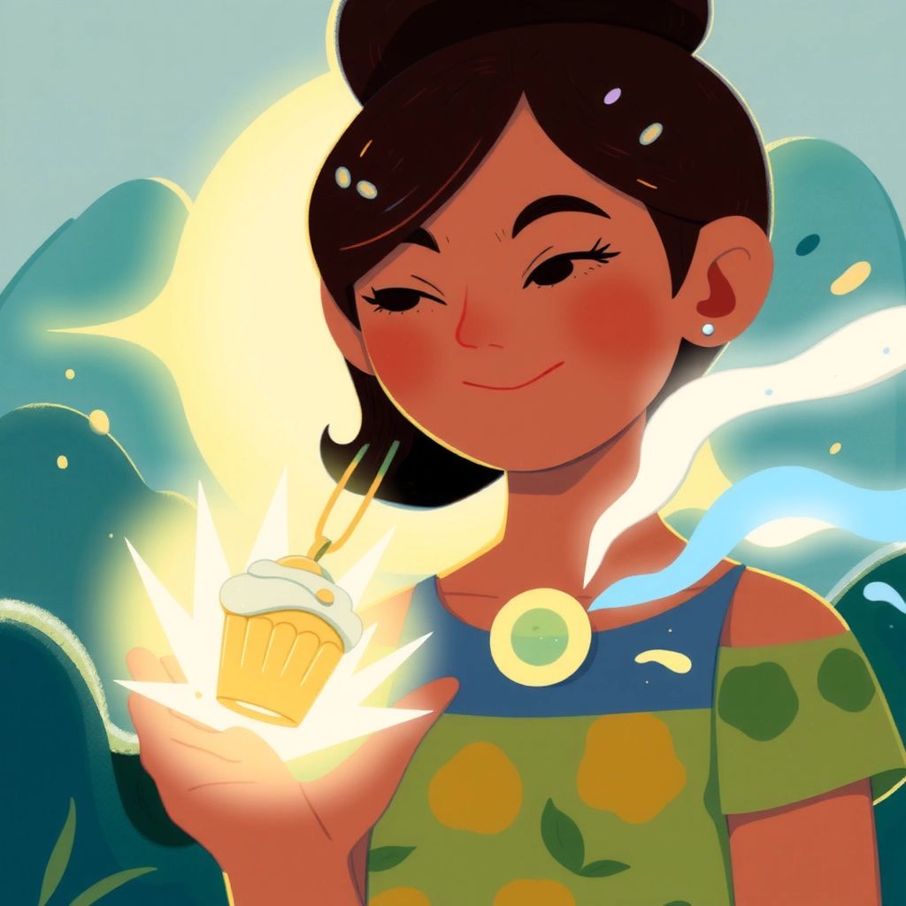 Once upon a time, there was a curious girl named [Vicki](PMX2CPFH). She loved adventures and sweets, and one day, she found herself in the most delightful place—a land full of giant cupcakes and sweets as far as the eye could see!