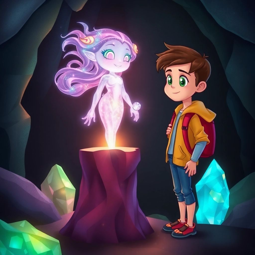 Curiosity sparked within [Victor](L6HB7HPF) as he touched the pedestal. Suddenly, the room lit up, and a holographic figure of an ancient guardian appeared! The guardian introduced herself as [Esmera](DXTK9W2P), the protector of the crystals, and she told [Victor](L6HB7HPF) the cave’s ancient secrets.