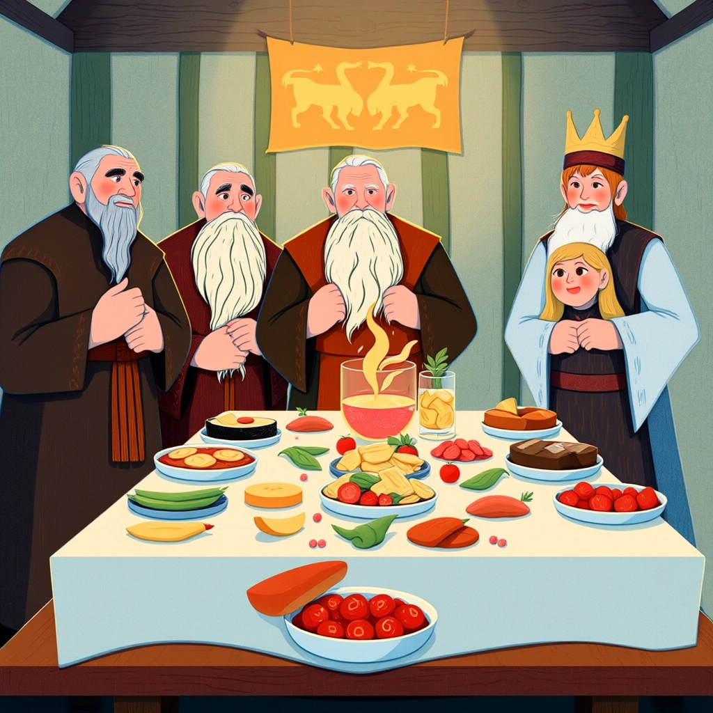 When the judges arrived, they couldn’t believe their eyes - the Thorvaldsons' spread was a colorful masterpiece, from roasted meats to a honey-drizzled dessert! What wonders Vikings could cook!