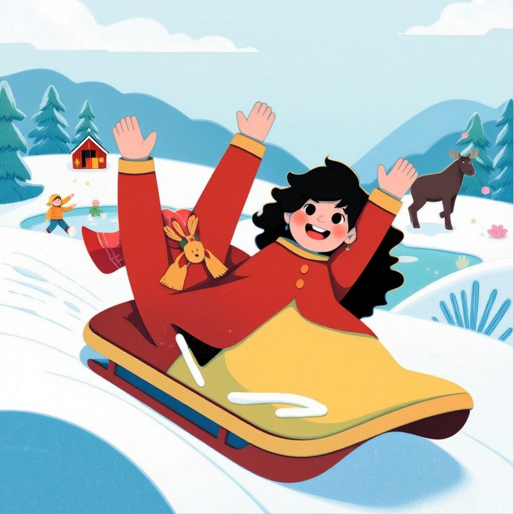 Over the next few weeks, [Zara](6YLQ7XSQ) made new friends and discovered the wonders of Canada: tobogganing down snowy hills, skating on frozen ponds, and even seeing her first moose! She began to love the cozy blankets and the soft glow of the fireplace.