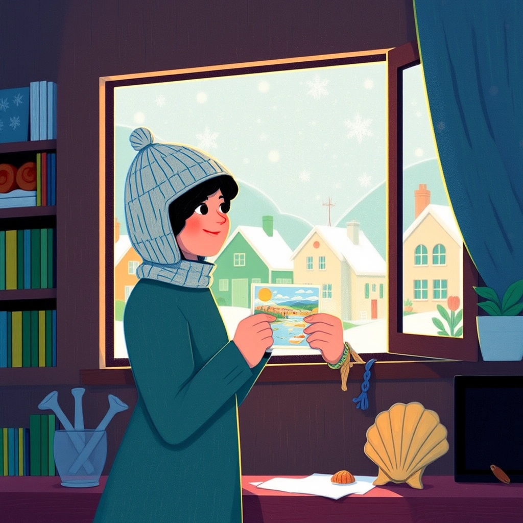 When the day came to leave, [Zara](6YLQ7XSQ) waved goodbye to the ocean and whispered, 'Goodbye, sunshine!' As their plane soared through the skies, [Zara](6YLQ7XSQ) imagined Canada just like she had seen in postcards—fluffy snow, giggling kids making snowmen, and cozy cottages where people sipped hot chocolate by the fire.