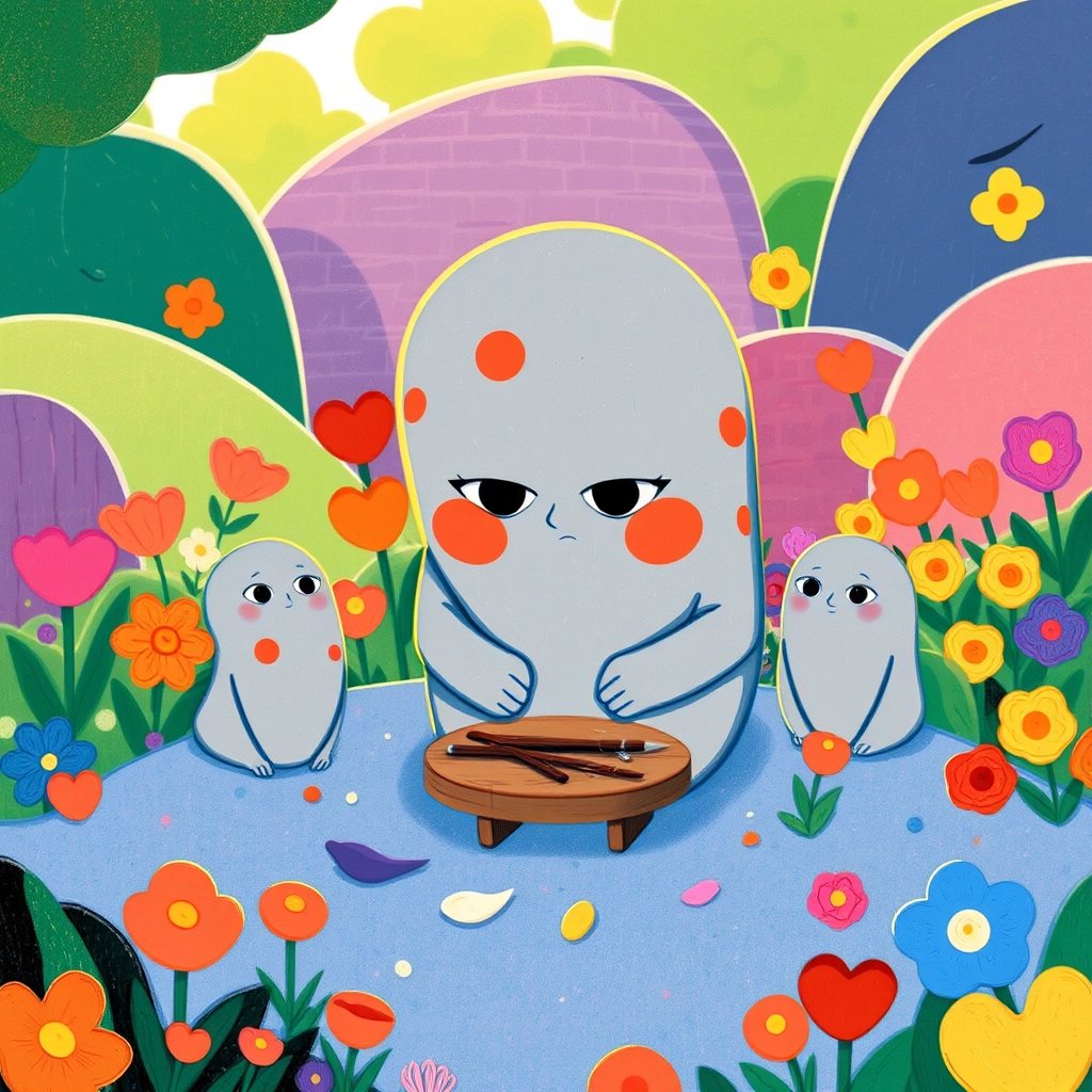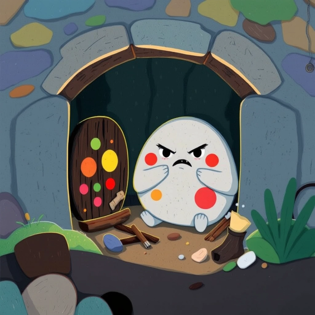 [Speck](WB23K4VF) the pebble wasn’t happy at all, her spots turned red as she began to bawl. Her friends and family touched all her stuff, and she thought to herself, 'Enough is enough!'