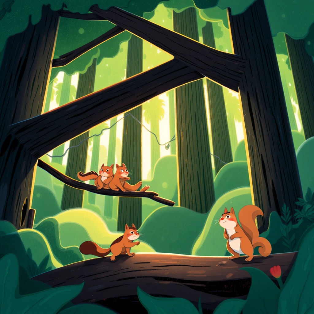 Next, Benny buzzed over to the deep, shady woods. There were towering trees and playful squirrels, but not a single flower to be found.