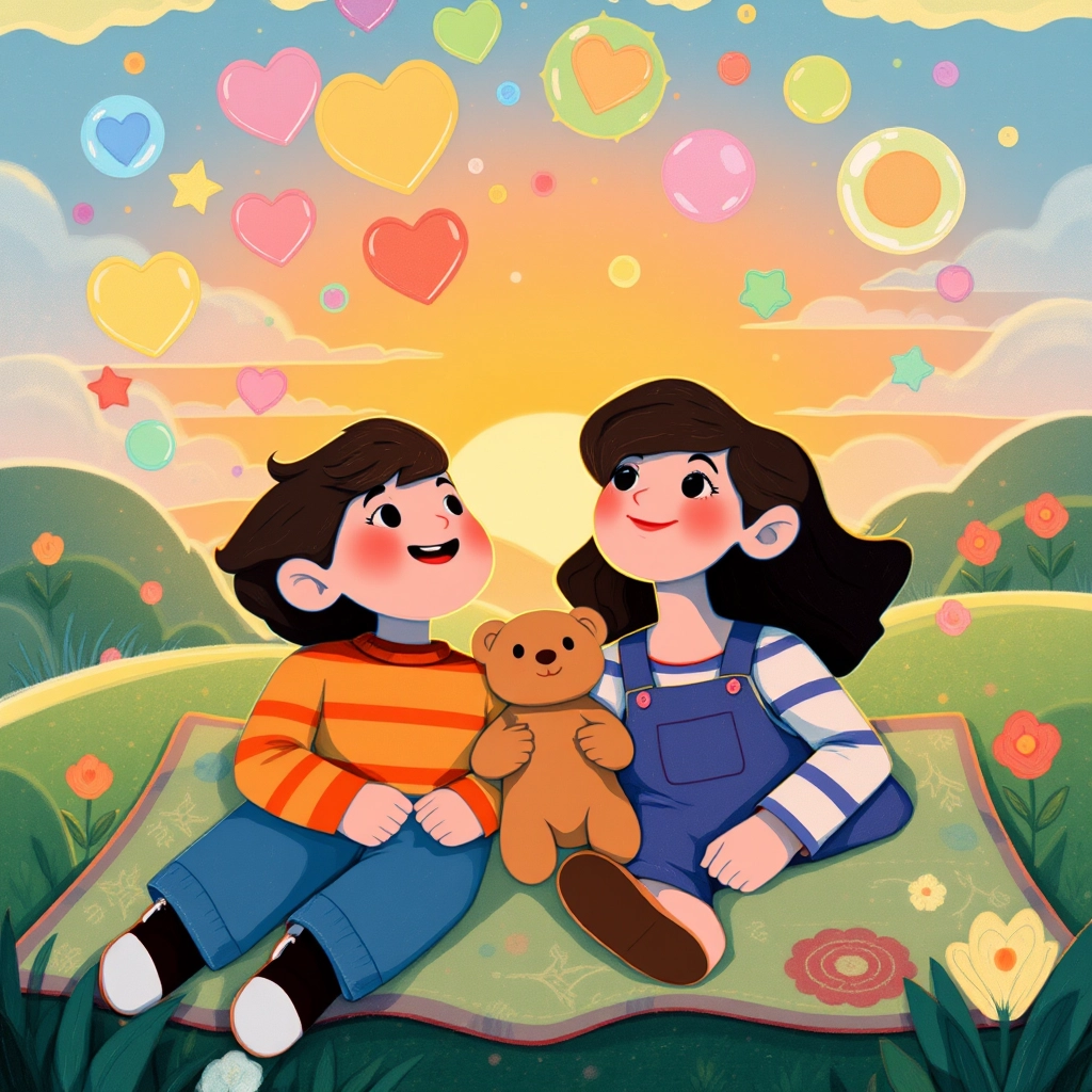 His momma smiled and said, 'Love is like a magic bubble—it floats all around us, and it grows bigger the more we share!'