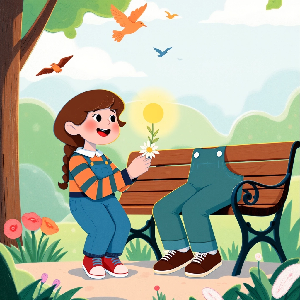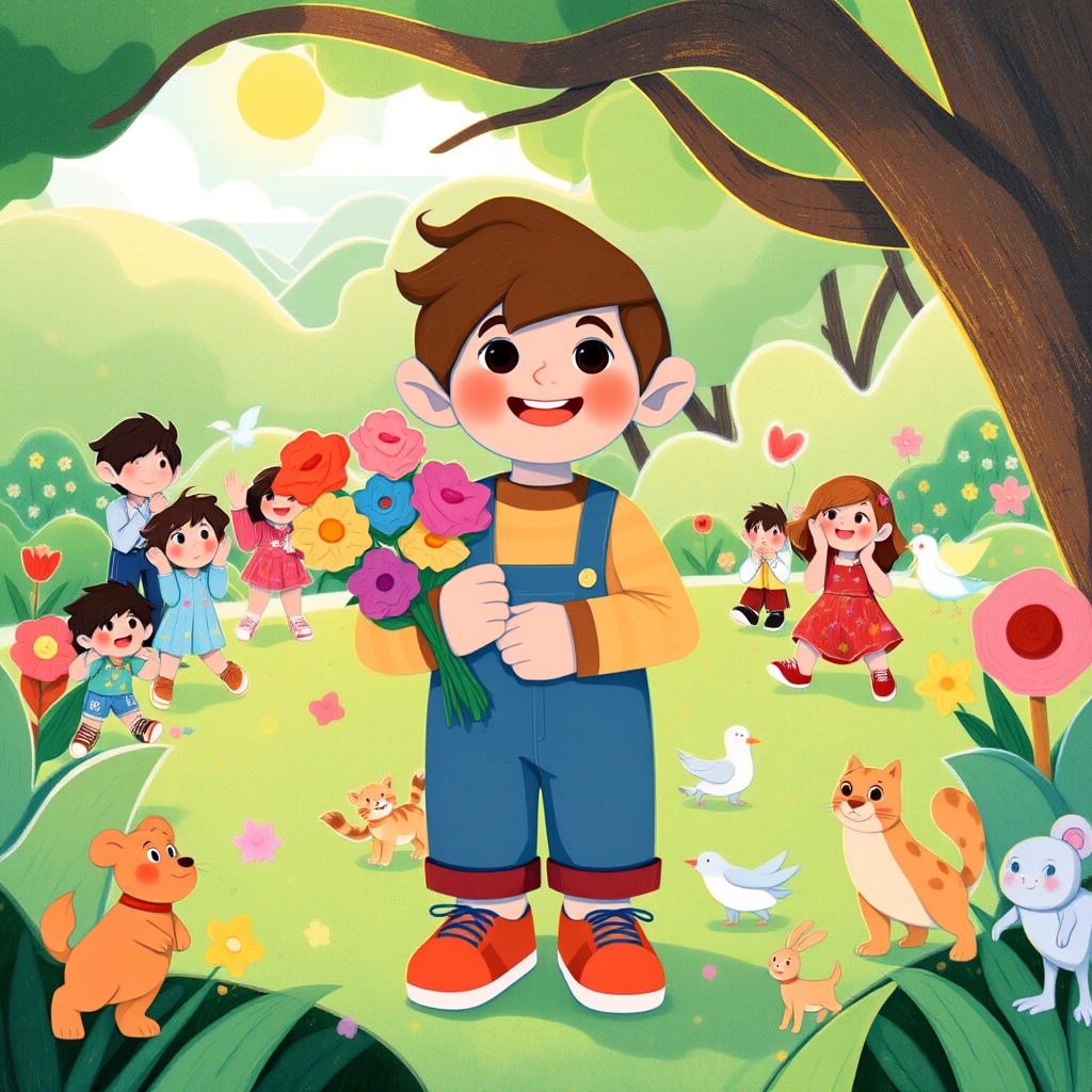 First, he gave a flower to a little girl who was feeling sad, and her smile made him feel warm inside.