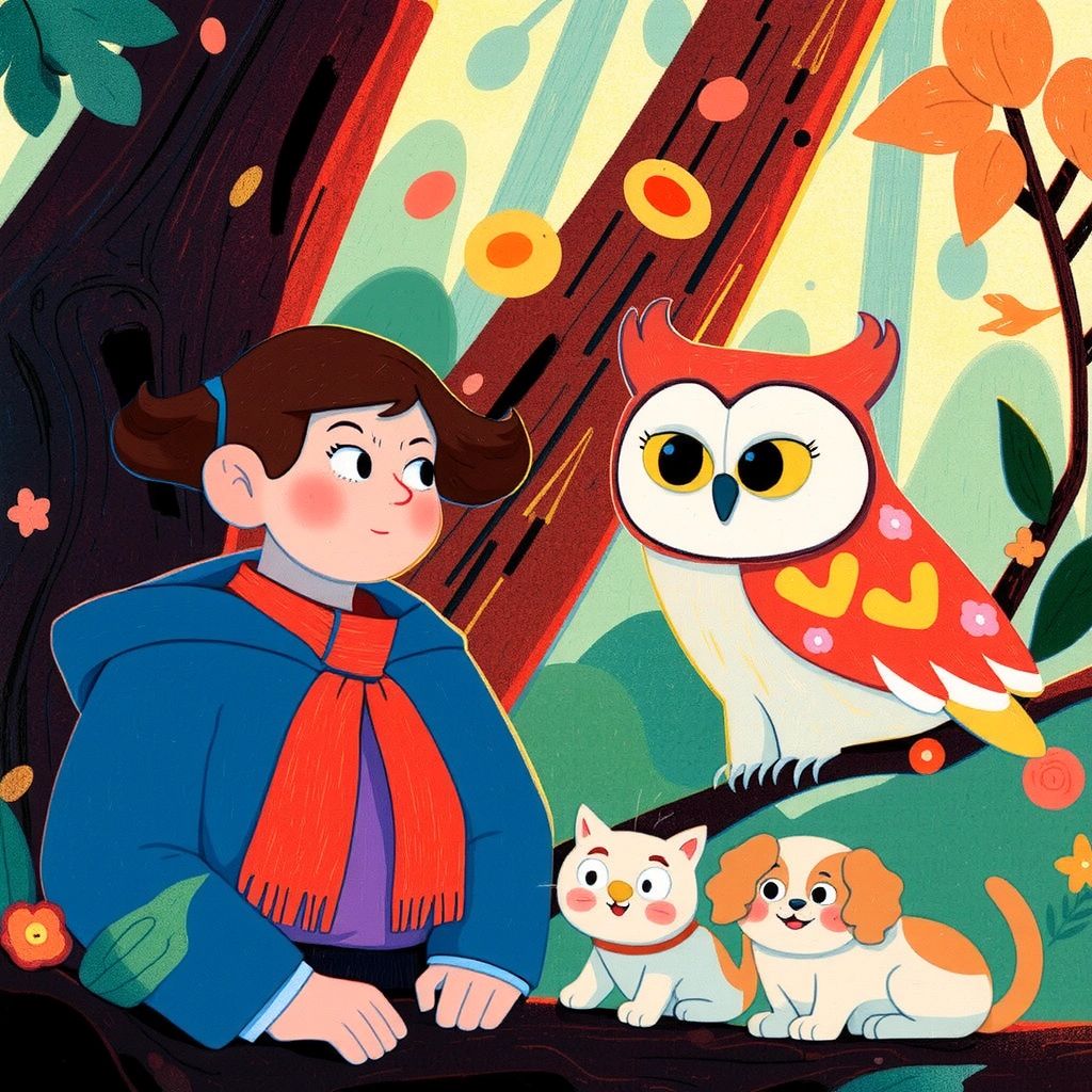 As [星](KX4CJL52) entered the Enchanted Forest, the trees seemed to whisper with every step she took. She was greeted by a wise old owl perched on a branch.