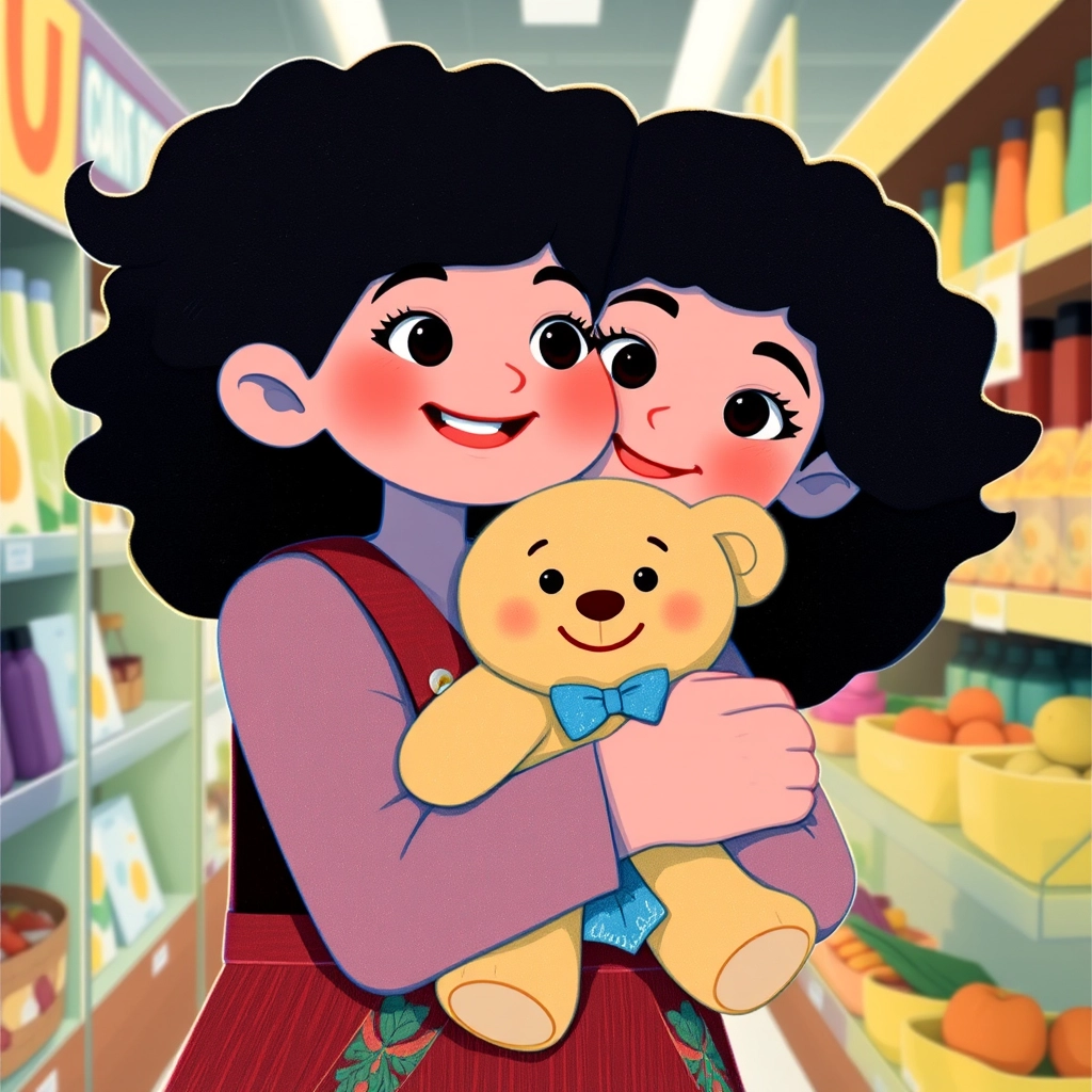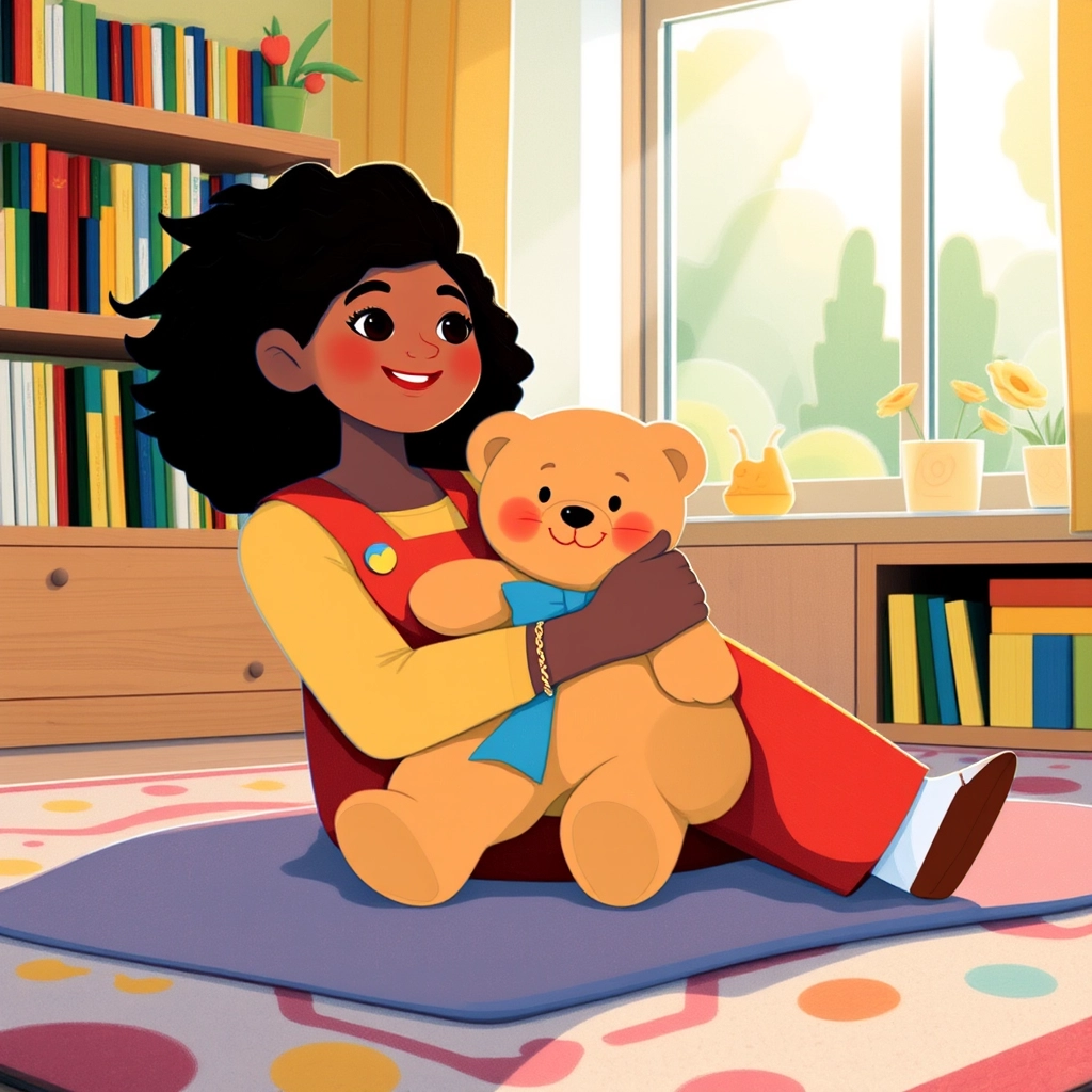 [Yomi](S73BM76J) ran to grab her teddy bear, hugging him tight. 'I missed you so much, [Diamond](VWLD6LGN)!' she said with a big smile.