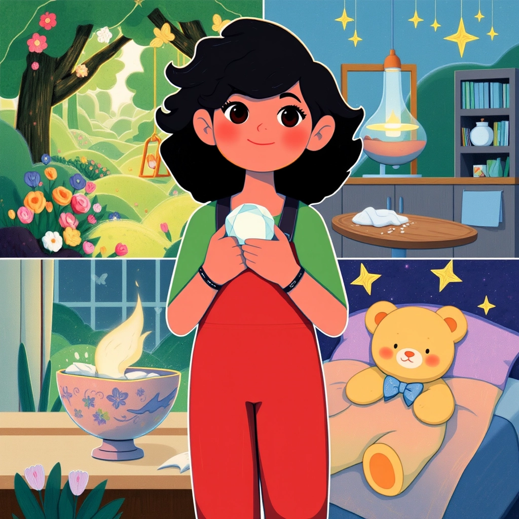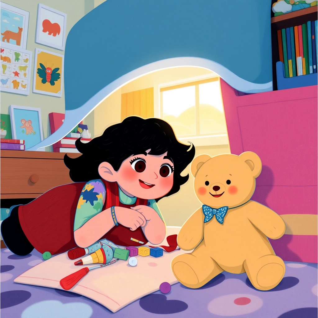 Once upon a time, there was a joyful little girl named [Yomi](S73BM76J) who loved her teddy bear, [Diamond](VWLD6LGN), more than anything in the world.