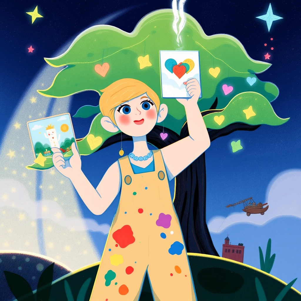 'You’re an artist in your heart,' the tree told [Lily](56J93V52), who joined with paint-streaked hands. 'You paint love into the world in your own unique way.'