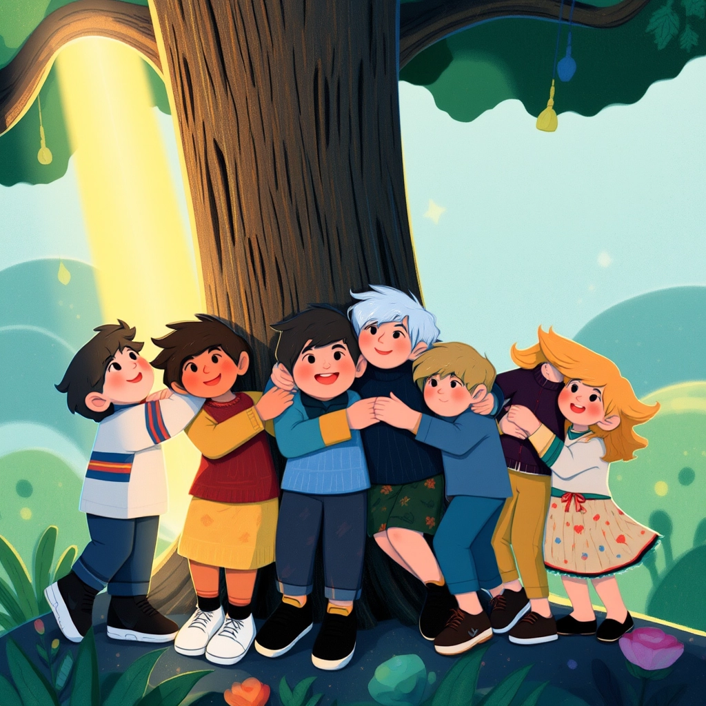 Each child hugged the tree goodbye, their hearts glowing. It reminded them, 'You're missed, you're loved, and you make the world beautiful. Never forget that!'