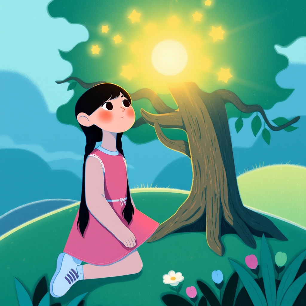 'But what if I look different or live somewhere far away?' asked [Mei](VRWK7RZ9), as her twin braids swayed in the wind. 'Even then, you are incredibly loved,' said the tree with a glow.