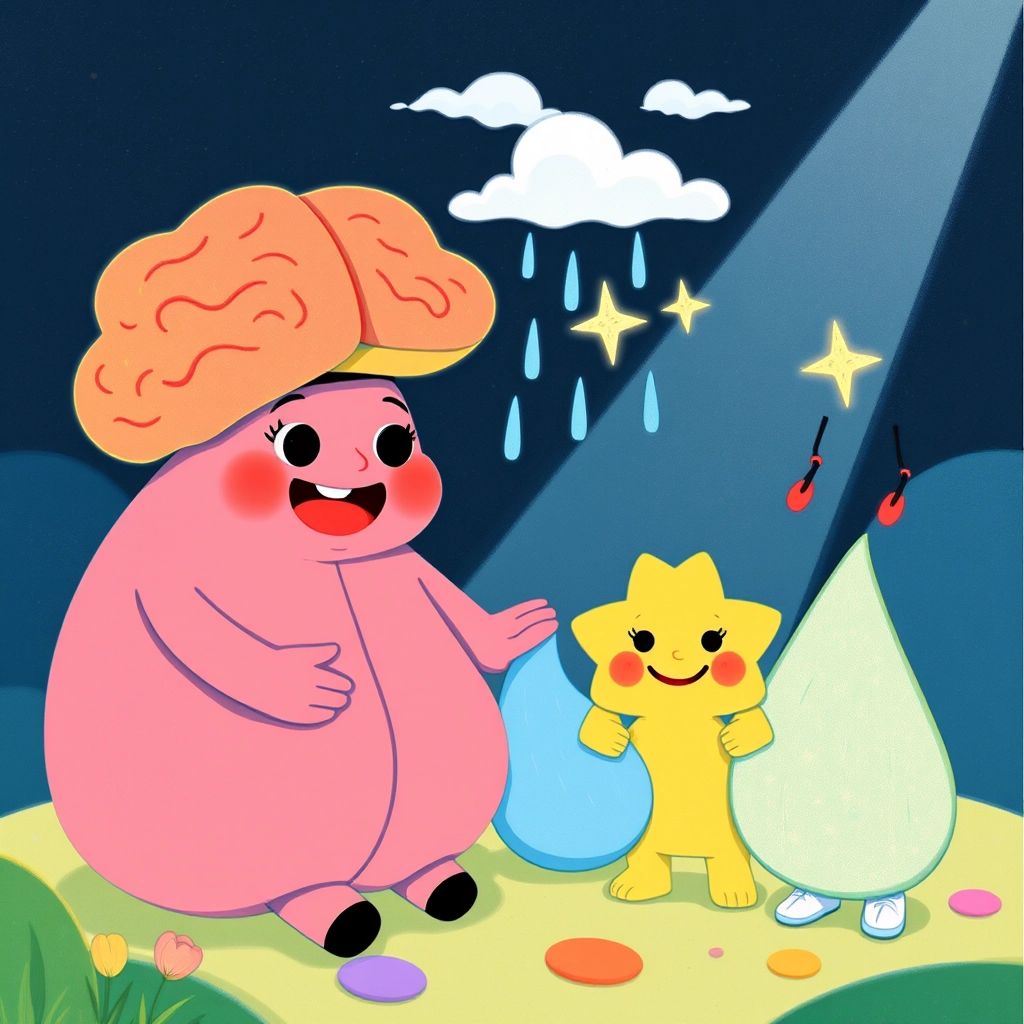 Once upon a time, inside every child’s tummy, lived [Yummy Brain](7377F6MJ), a vibrant little tummy-brain duo who knew all about how our emotions worked. [Yummy Brain](7377F6MJ) loved to help her friends understand their feelings!
