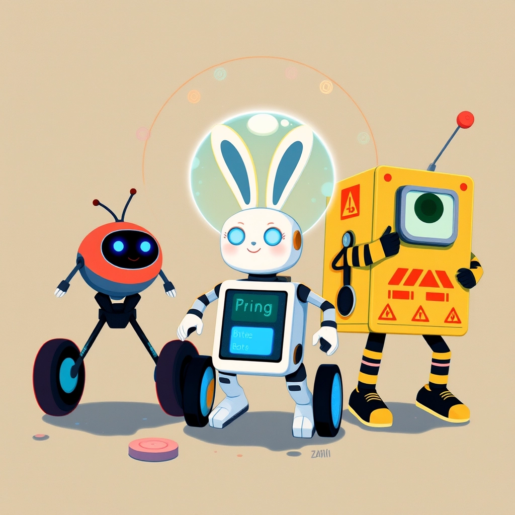 [Zabbix](LHTLDLBR) has a team of helpers: [Byte](YVBTDFTY) the Data Scout, a speedy bot who collects information; [Ping](QQJ33SGP) the Network Hopper, who checks on system health; and [Logi](27P77MZ3) the Problem Solver, who finds and fixes issues.
