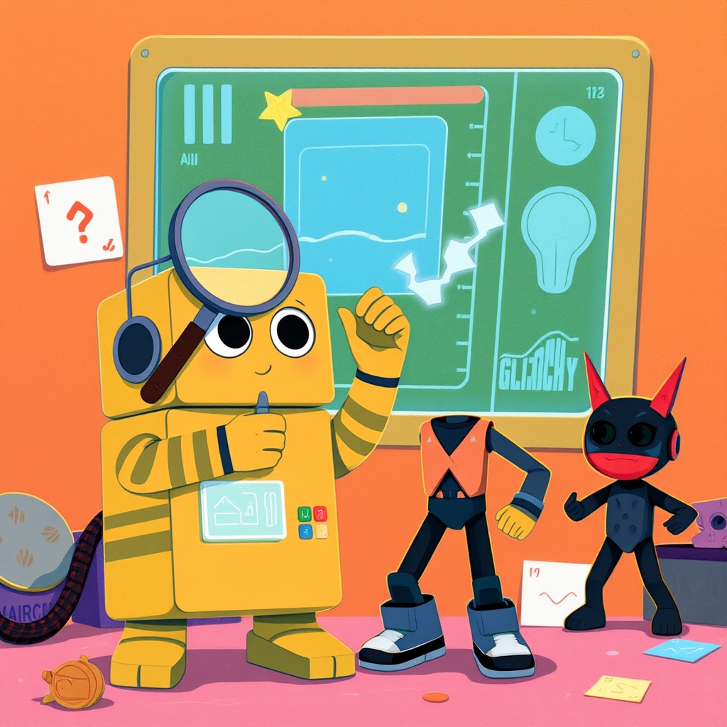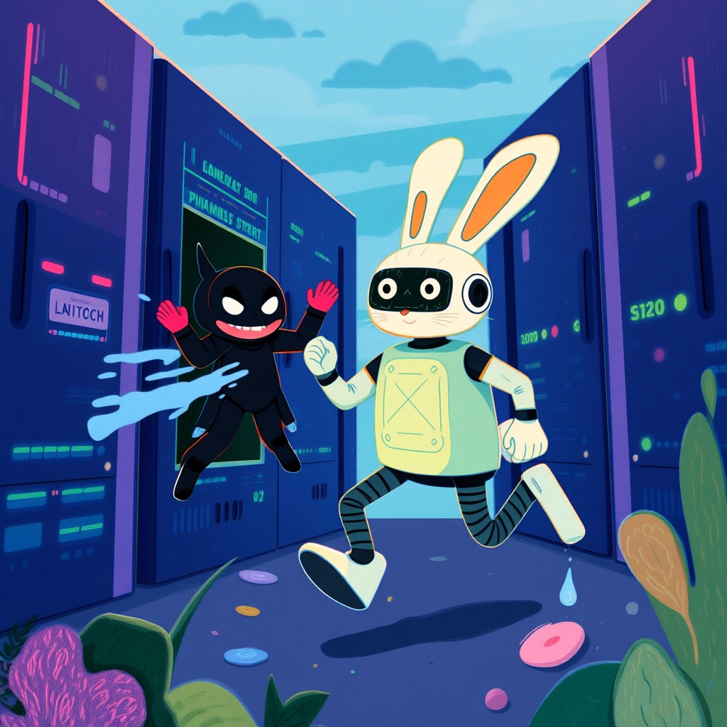[Logi](27P77MZ3) analyzed the logs and saw traces of [Glitchy](VF393LSY)'s mischief. Using her tools, she began to repair the broken systems and set traps to prevent [Glitchy](VF393LSY) from causing more trouble.