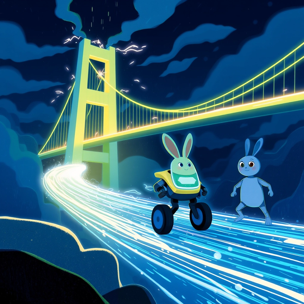 [Byte](YVBTDFTY) zipped through cables, collecting information quickly. She discovered a broken data bridge that needed fixing right away. It was stopping the data from traveling properly!