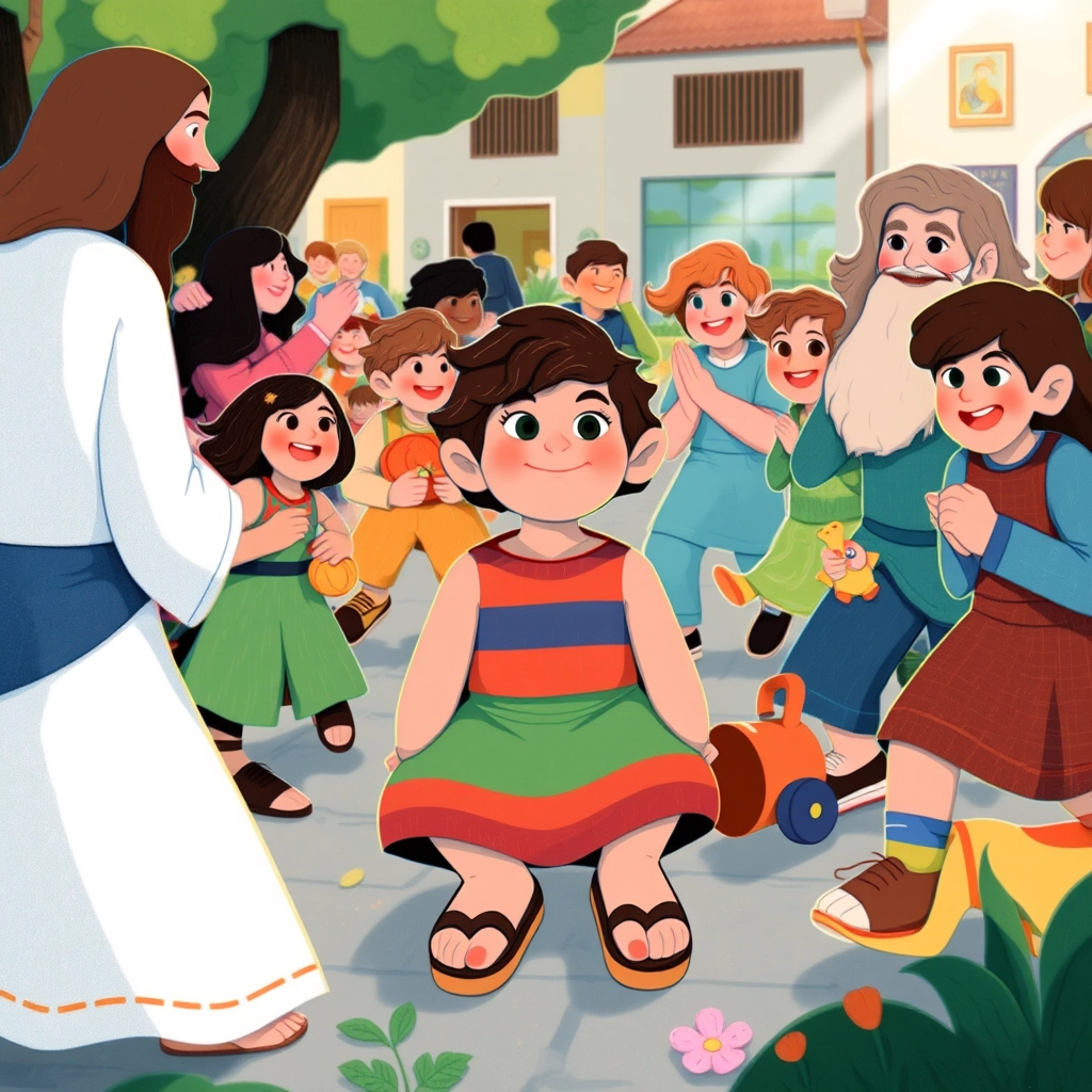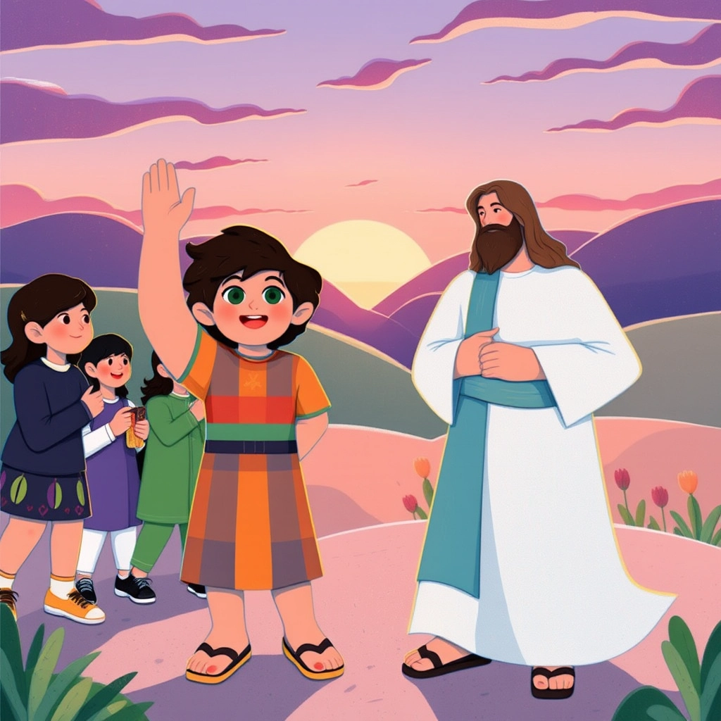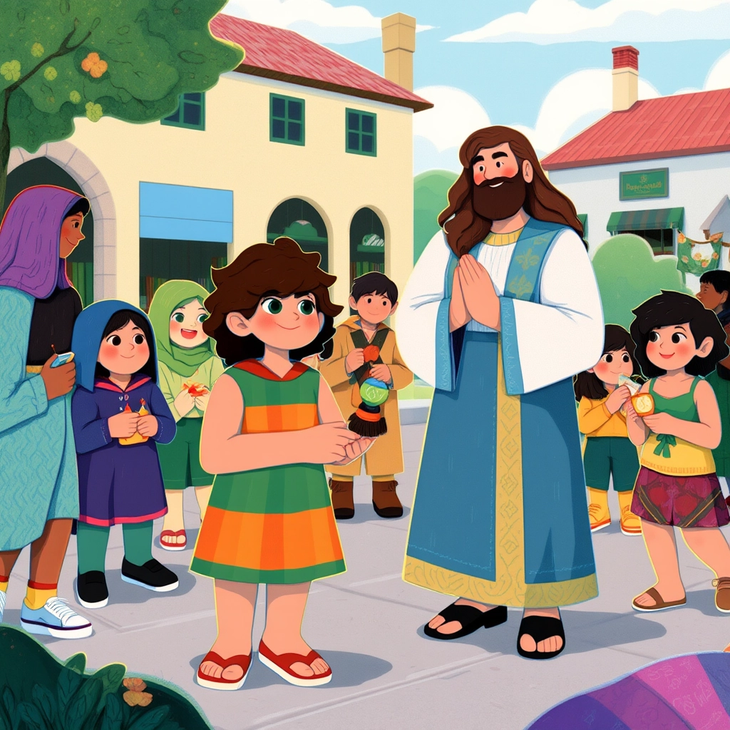 When [Jesus](VG2SYFN7) left, [Zacchaeus](R57BSMQR) waved and shouted, 'I’ll keep sharing!' [Jesus](VG2SYFN7) smiled and said, 'That’s how we spread love.'