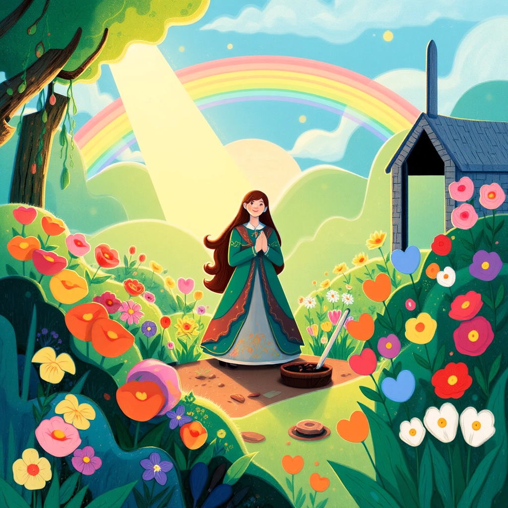 Thanking Reynard, Zarah returned to the castle with the magical seeds. She planted them in the garden, and beautiful trees and flowers bloomed instantly. Her kingdom became more beautiful than ever, attracting visitors from all around.