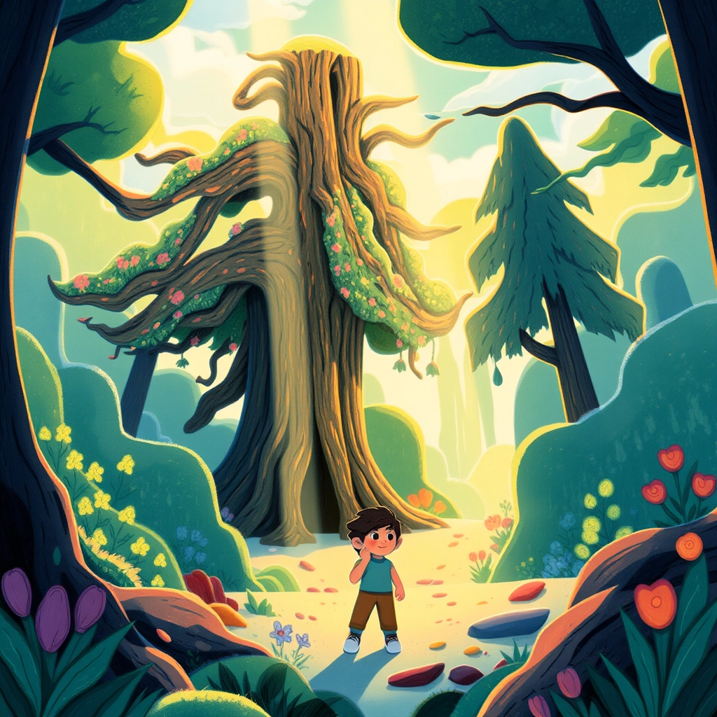 To [Zayn](VFHZMQJ2)’s amazement, the ancient tree spoke in a low, kind voice, 'Are you lost, my young friend?' [Zayn](VFHZMQJ2) stammered, 'Yes? I... I didn’t know trees could talk!'