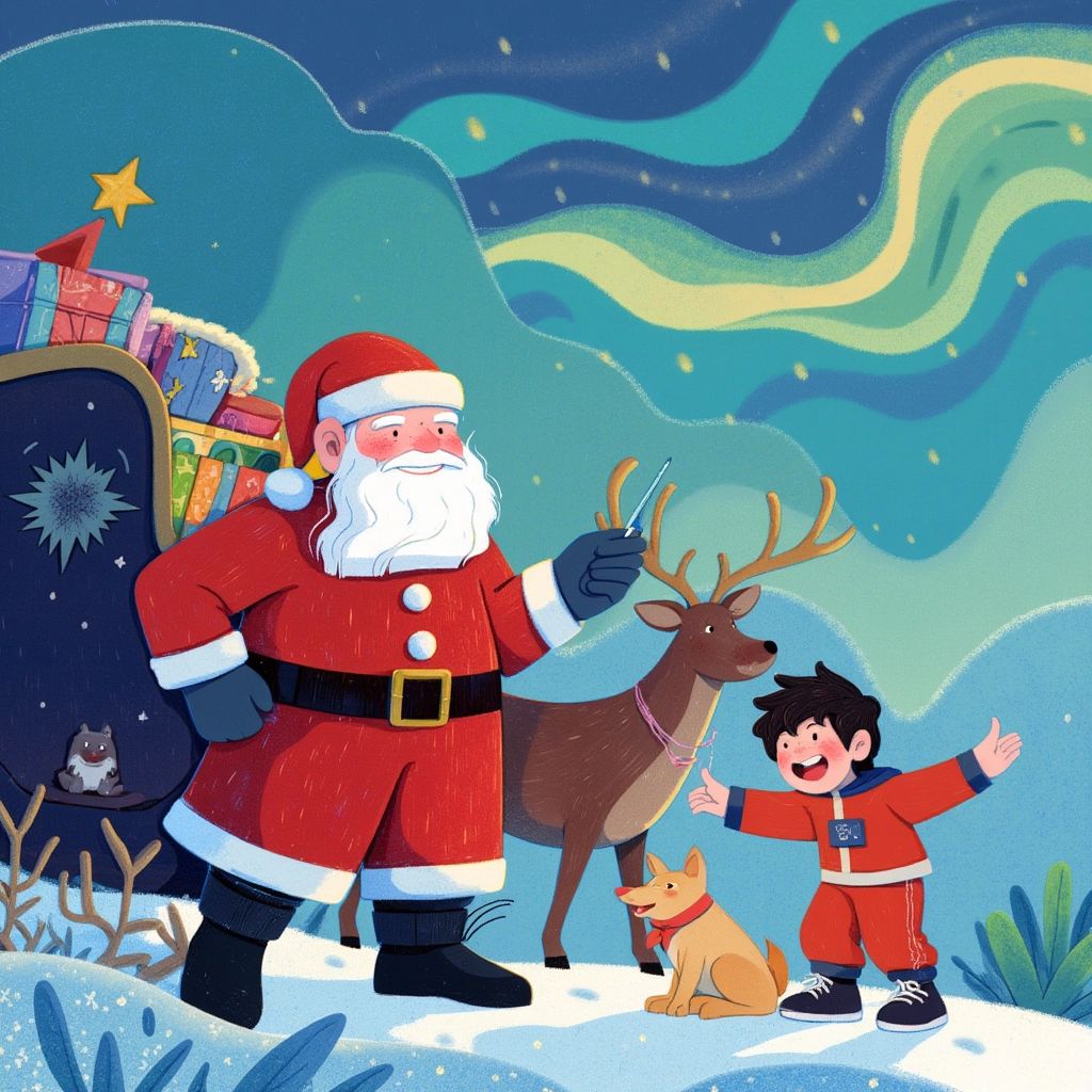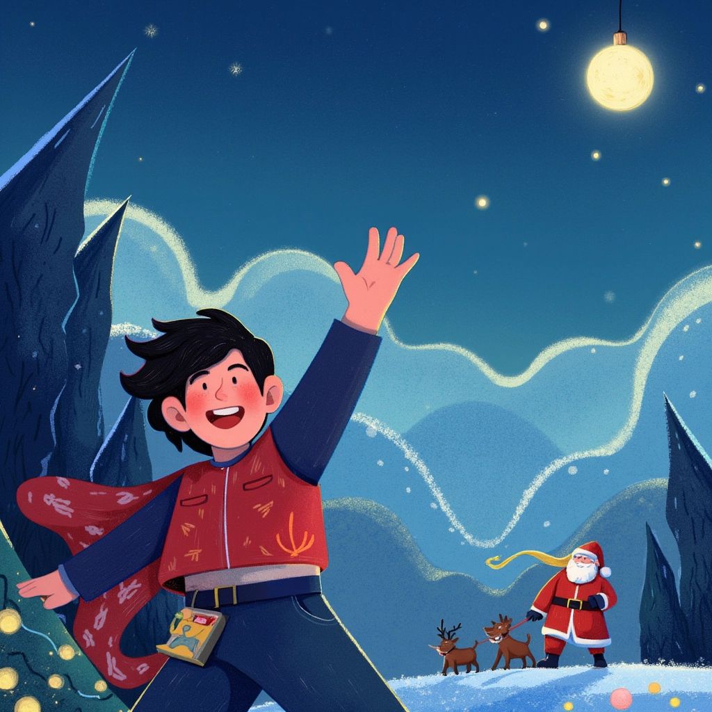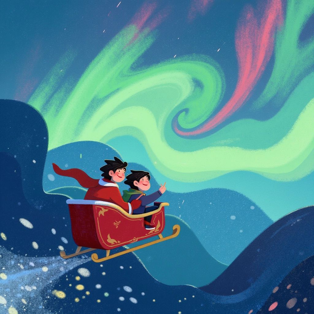 As they soared through the sky, [Zhang](XTRPXH7P) marveled at the twinkling lights of the Aurora Borealis. Santa explained how the lights were the magic of winter, painting the night with colors.