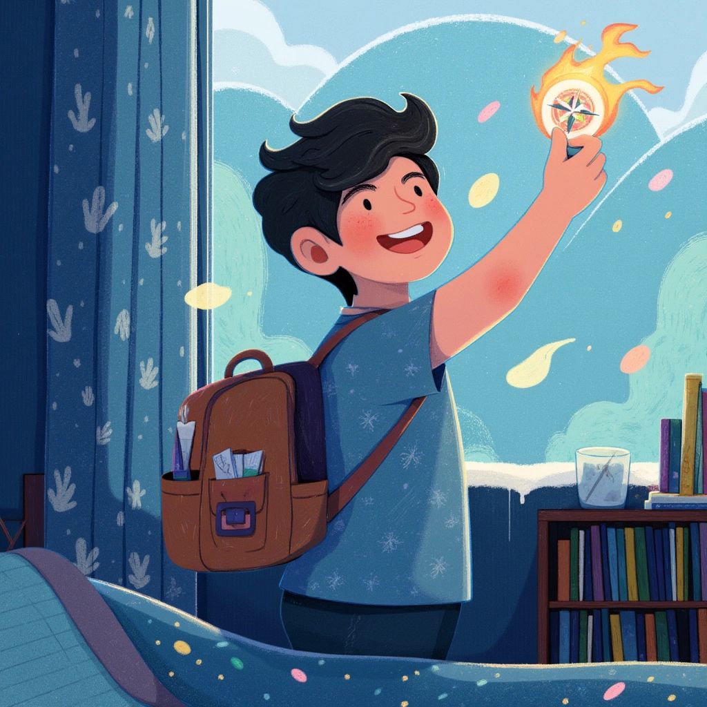 One frosty morning, [Zhang](XTRPXH7P), a curious young boy with bright eyes and a tinker's grin, woke up to find a mysterious compass next to his pillow. Its needle pointed towards a new adventure—the North Pole!