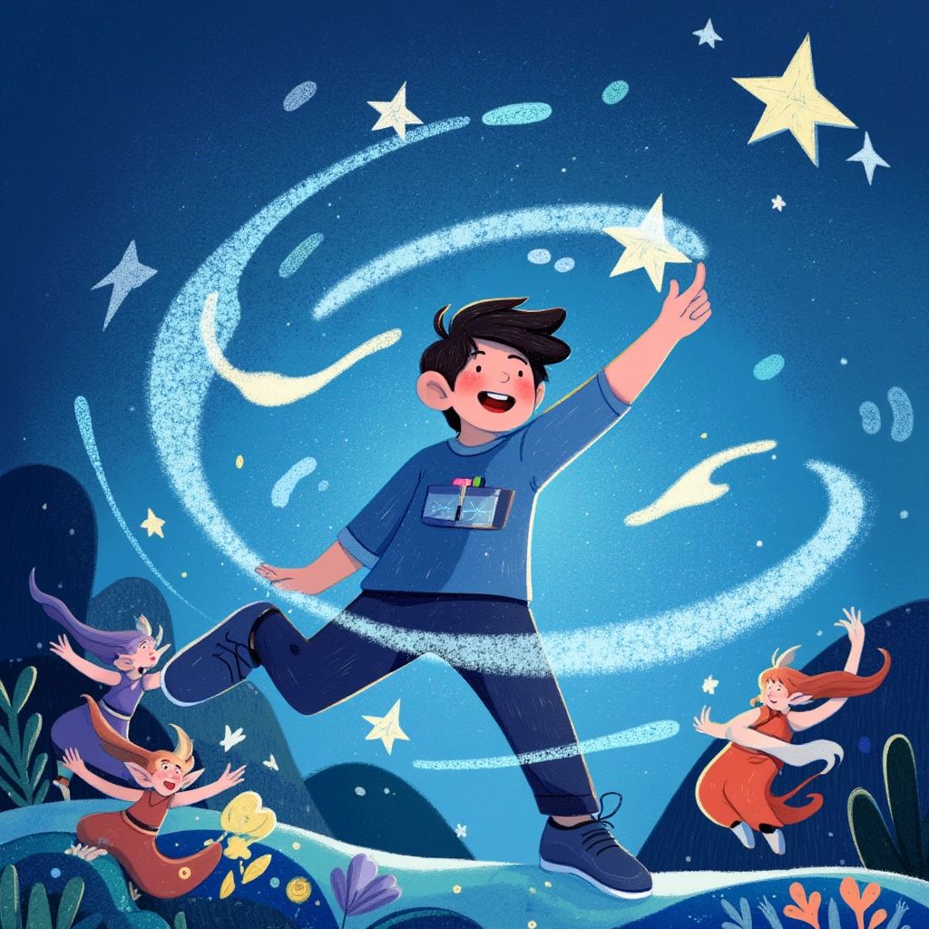 [Zhang](XTRPXH7P)'s favorite part was when the elves showed him how to make snow sparkle at night. He tinkered and twirled to create a mesmerizing dance of shimmering snowflakes.