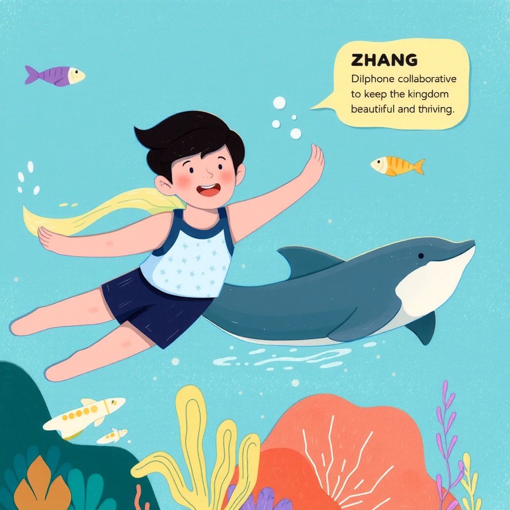 [Zhang](NYSNFXQX) learned about the harmony and teamwork that kept the underwater kingdom thriving from [Fin](3LRZ5VGL), the friendly dolphin.