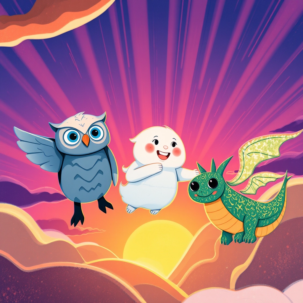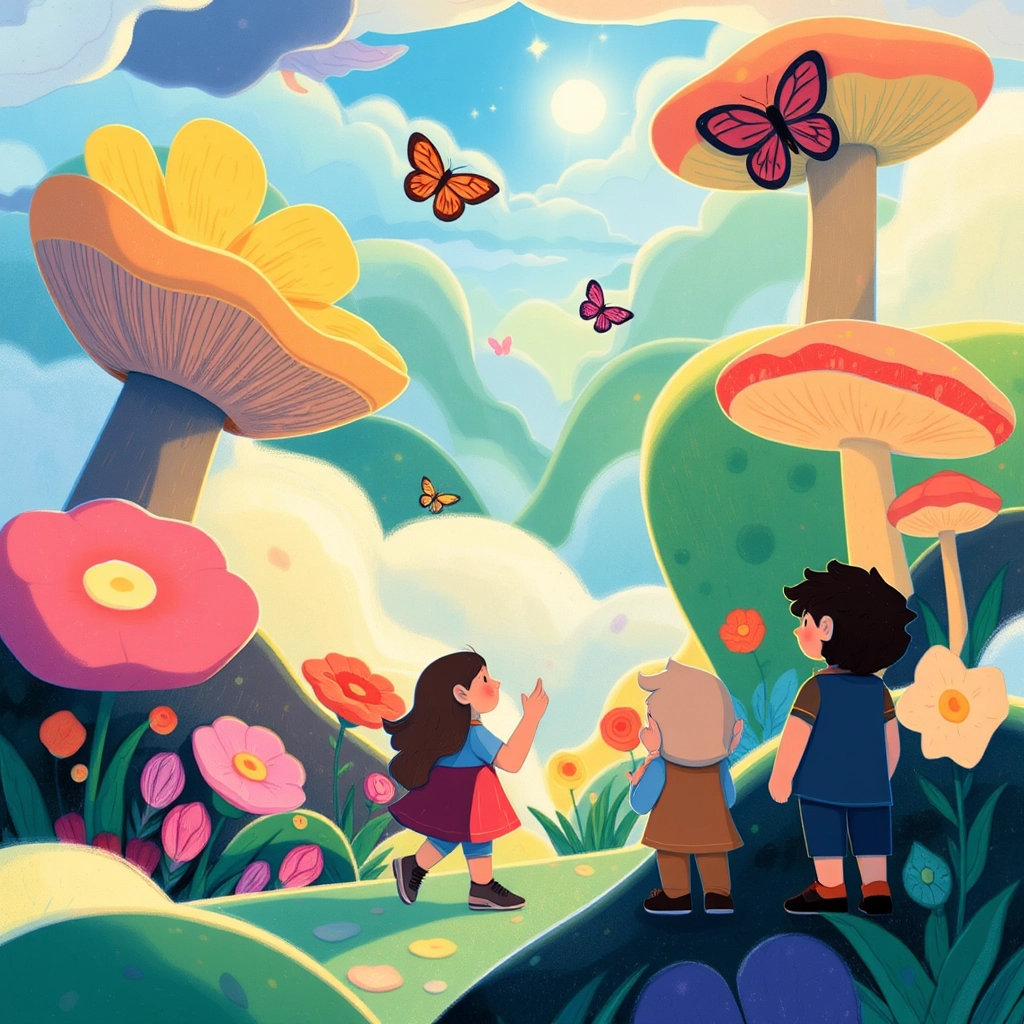 As they headed back, [Grizzy](SJPDLWRS) grinned. 'You’re a great explorer, Zowie!' 'And a kind wisher!' laughed [Puff](BYK26NLN). [Glimmer](SHFSHDKX) somersaulted with joy.