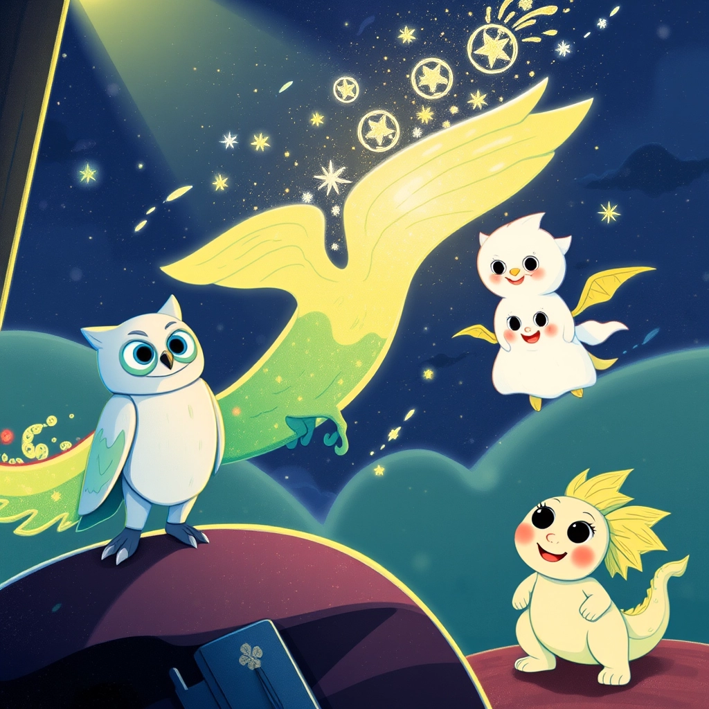 Outside, [Grizzy](SJPDLWRS) the robotic owl swooped down, its shiny silver wings glinting in the sun. 'Ready to explore, Zowie?' [Grizzy](SJPDLWRS) hooted, his eyes glowing bright blue.